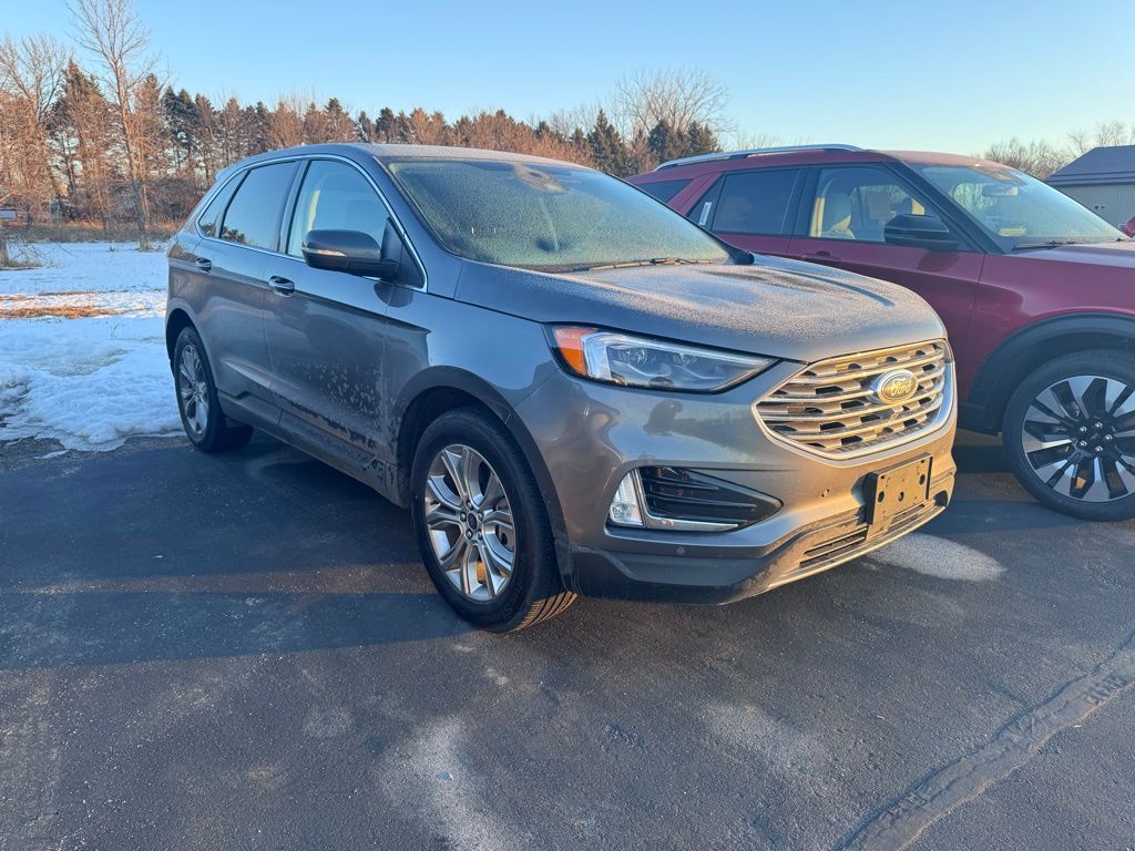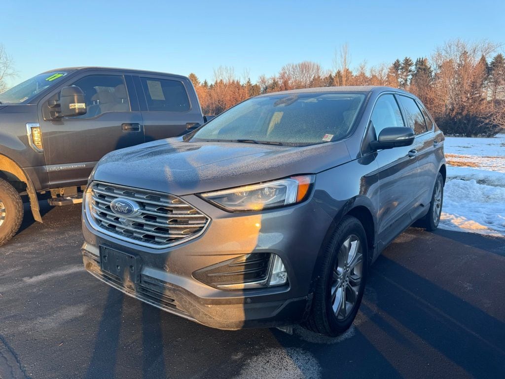 Powered by the efficient and responsive EcoBoost 2.0L I4 engine, paired with an 8-speed automatic transmission and all-wheel drive, this Edge Titanium delivers an impressive blend of performance and efficiency, with an EPA-estimated 21 mpg in the city and 28 mpg on the highway.